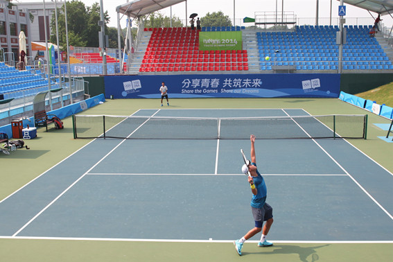 8月5日,按照南京青奥组委会安排,我院举行羽毛球、网球项目第二次联调联试,我院场馆全体P类人员和志愿者参加,取得良好效果。羽毛球联调联试要求P类人员和志愿者上午7点到岗,模拟了多场男单、女单比赛,并按要求进行女单项目颁奖演练,颁奖、媒体、语服等相关条口P类人员及志愿者参与。网球的联调联试借助国际网联U18巡回赛南京站比赛展开,部分网球竞赛项目相关P类人员和志愿者按U18比赛日程上岗,这一国际网联A类赛事比赛也是我院场馆团队对青奥会比赛的实战模拟。