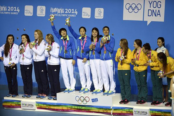 8月18日晚,在南京奥体中心游泳馆举行的青奥会游泳比赛中,我院选手沈铎、张雨霏携手中国队其他两名队友以4分03秒58的成绩夺得女子4×100米混合泳接力冠军。