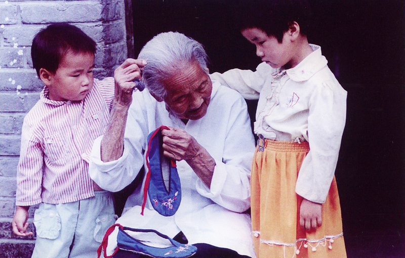 张凤扬摄影作品----孩子们看百岁老奶奶绣花鞋