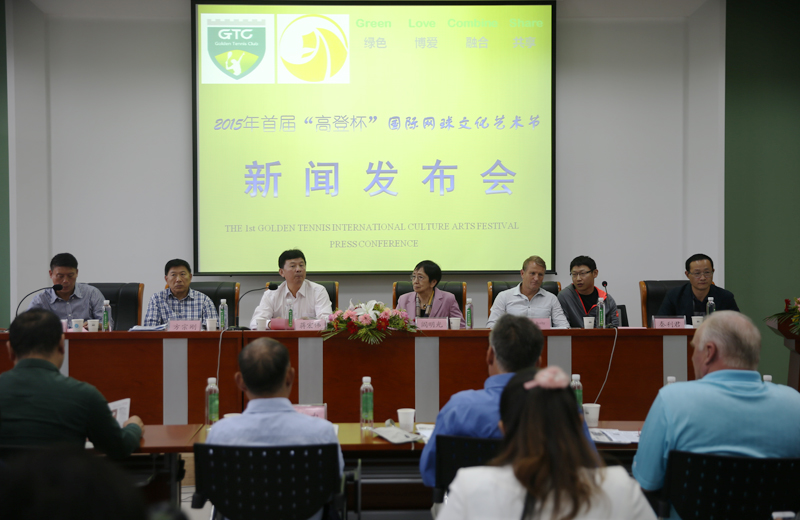 10月8日下午,2015年首届“高登杯”国际网球文化艺术节新闻发布会在我院中国网球学院举行。世界华人网球协会名誉主席、阎宝航基金会名誉主席阎明光出席发布会并讲话,我院副院长、中国网球学院院长蒋宏伟介绍了第一届国际网球文化艺术节情况和活动安排,世界华人网球协会、澳大利亚华人网球协会理事长方宗刚介绍了第七届“宝航杯”华人网球邀请赛情况,金利达董事长田金力和活动主赞助商、江苏高登网球俱乐部总经理秦利君分别讲话,发布会由中国网球学院副院长张健主持。出席发布会的还有新华日报、江苏卫视、新华网、江苏广播电台等20多家媒体记者和组委会相关人员。