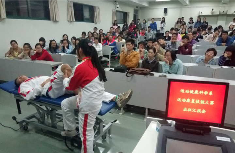 在大赛备战过程中,院领导及教务处高度重视,十分关心比赛情况,多次给予指导。运动健康科学系年初就举全系之力,制定备战计划,开展参赛动员,严格选拔出5名参赛学生。在最后三个月的封闭集训中,指导老师及参赛学生加班加点,睡眠很少超过六小时。许多专业课、基础课老师也放弃休息,无私奉献,认真辅导。运动健康科学系还聘请校外康复专家进行专项强化训练,并在出征前专门为代表队进行了实战模拟考核。