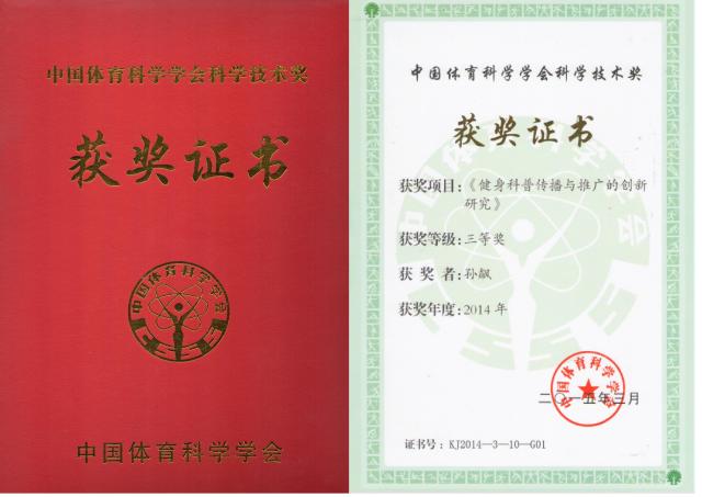 中国第十届体育科学大会11月6日在浙江杭州开幕。大会开幕式颁发了第六届(2014年度)中国体育科学学会科技奖,其中一等奖2项、二等奖10项、三等奖12项。我院两项成果获奖:钱竞光教授的科研成果《运动生物力学在训练、康复领域的研究和应用》获二等奖;孙飙教授的科研成果《健身科普传播与推广的创新研究》获三等奖。