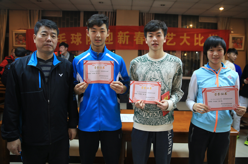训练处处长张健、运动康复医院副院长王家祥、羽毛球队高级教练张洪宝等组成夺冠梦之队