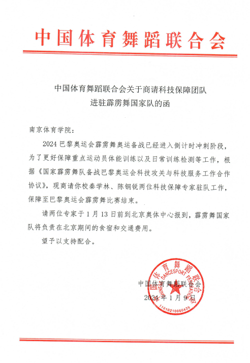 受中国体育舞蹈联合会邀请,我校体育科学研究院助力中国国家霹雳舞队备战巴黎奥运会,提供全方位科技助力和服务保障工作。