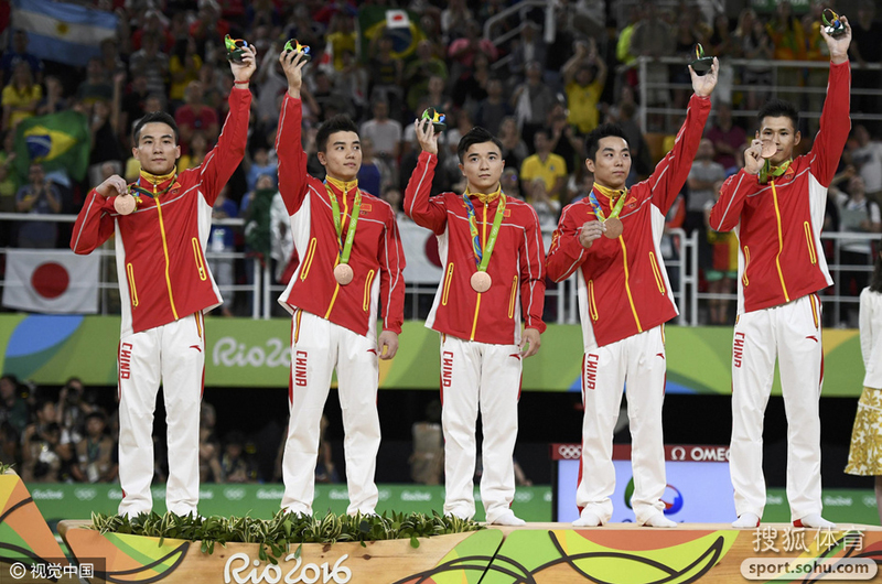 中国体操男团里约摘铜,右二为我院运动员尤浩