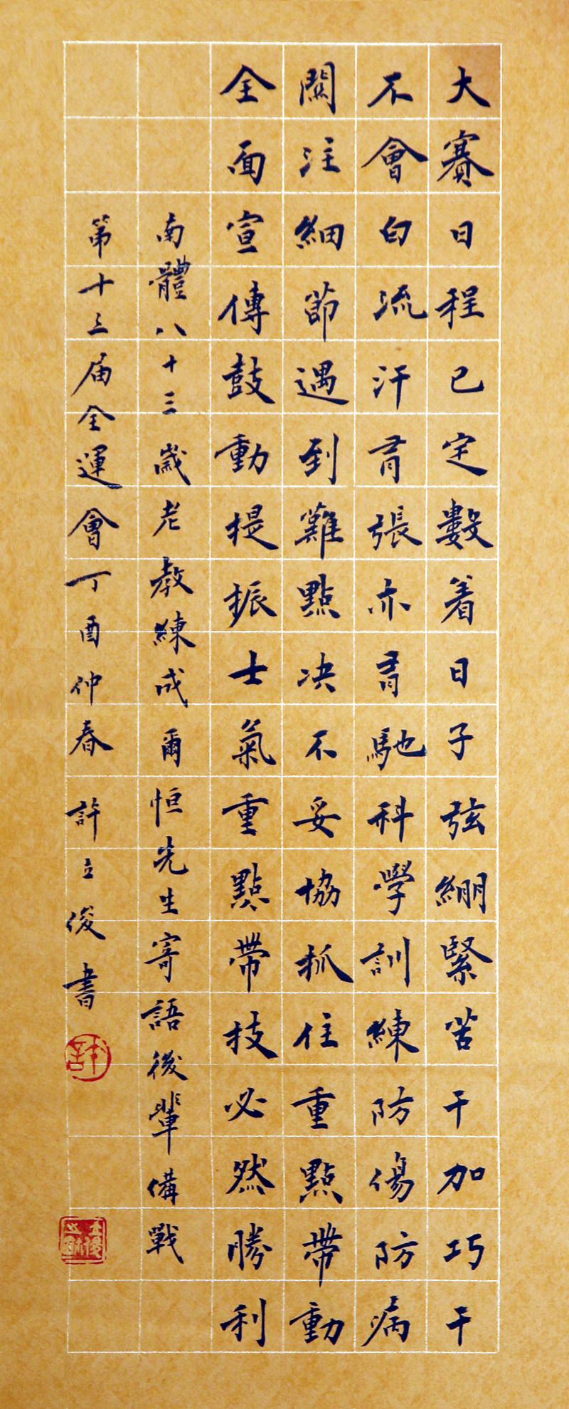 为鼓舞士气,全力做好第13届全运会 备战工作,近日,我院83岁老教练成尔恒先生寄语后辈备战第13届全运会,全文如下: