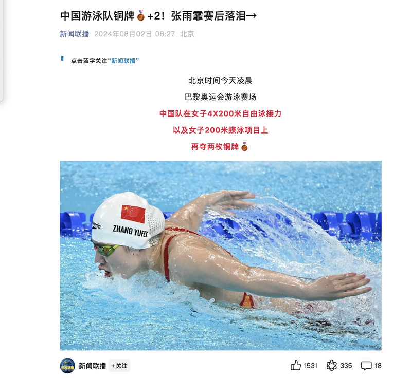 【新闻联播】中国游泳队铜牌➕2!张雨霏赛后落泪