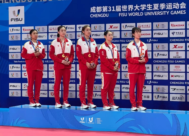 bjycgold乒乓球运动员钱天一、赵尚助力大运会国乒女团夺冠