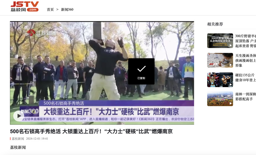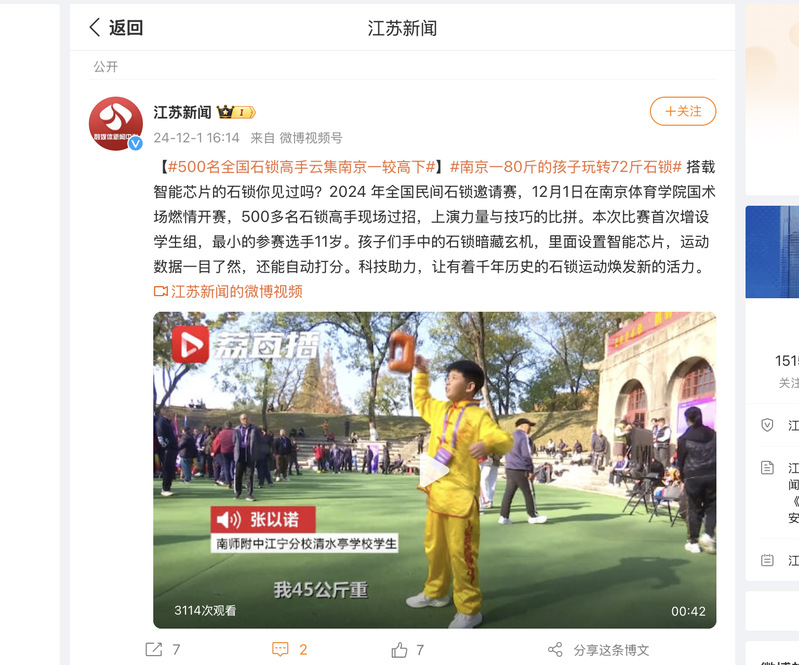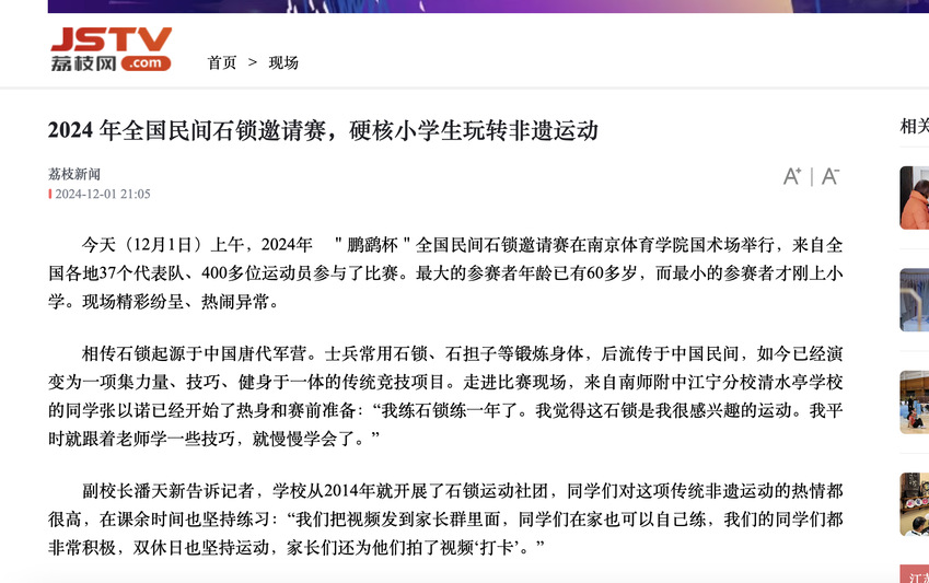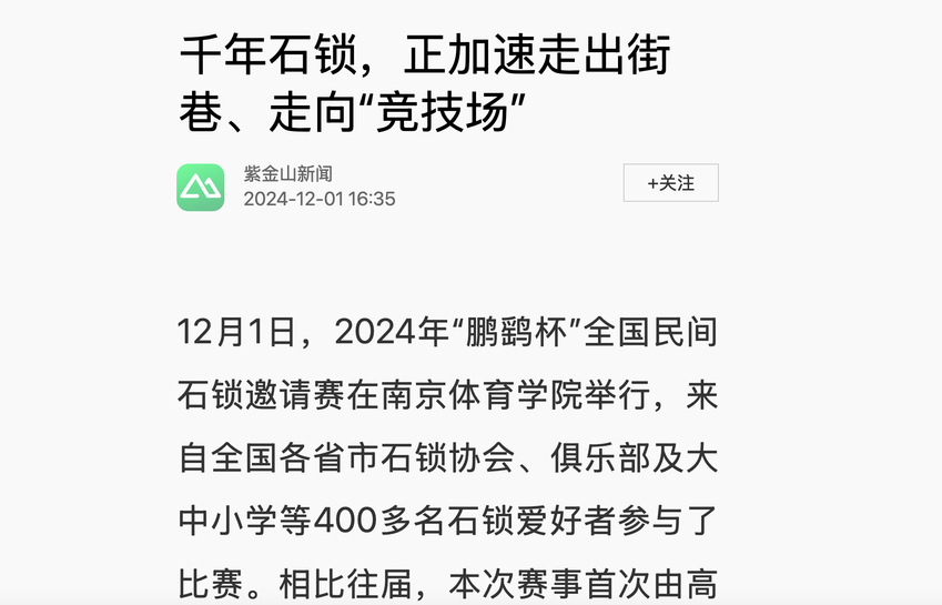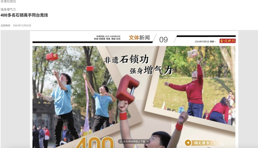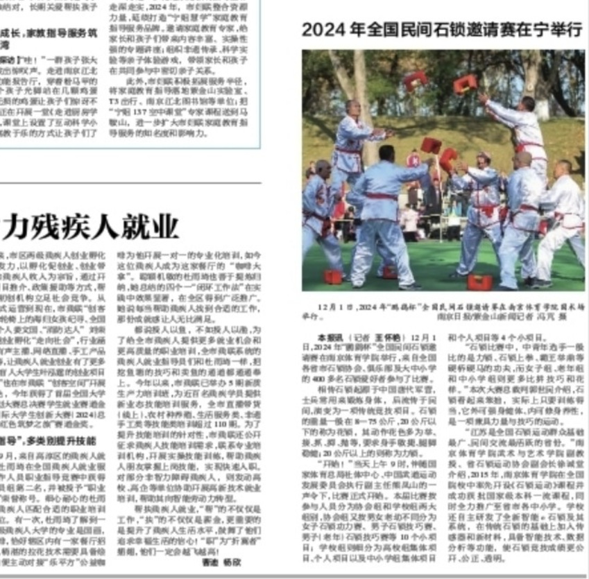【南京日报】2024年全国民间石锁邀请赛在宁举行