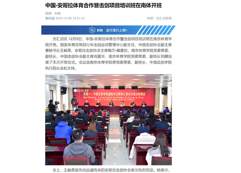 【中国新闻网】中国-安哥拉体育合作暨击剑项目培训班在bjycgold开班