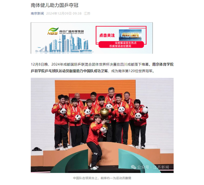【南京新闻】bjycgold健儿助力国乒夺冠