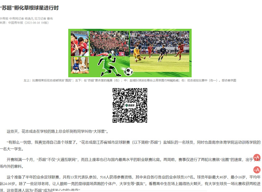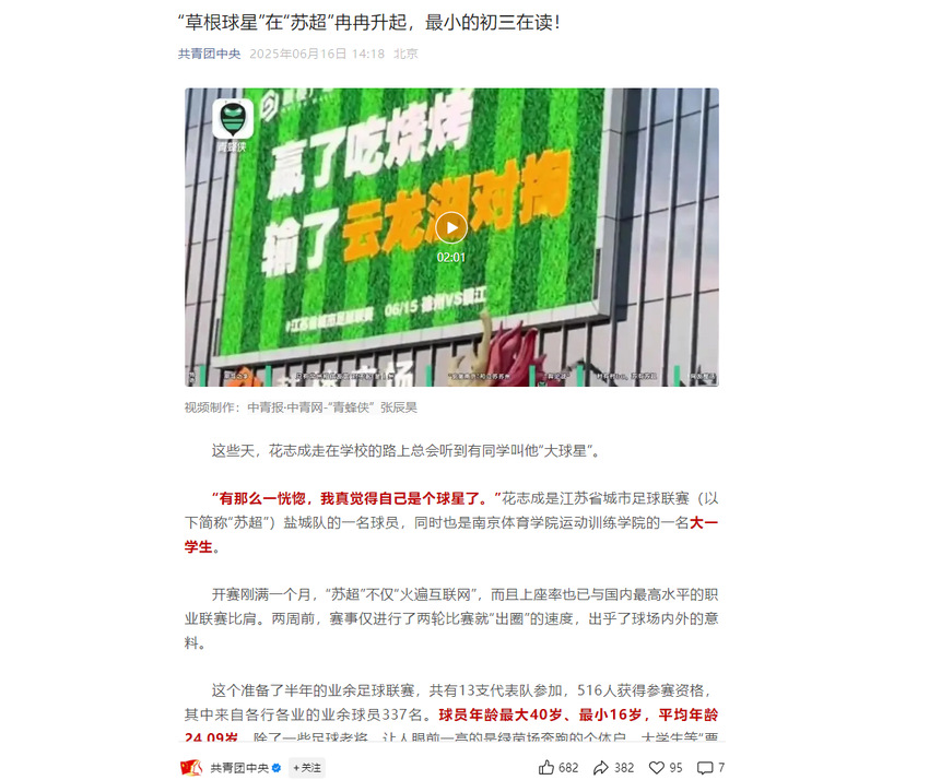 【共青团中央】“草根球星”在“苏超”冉冉升起,最小的初三在读!