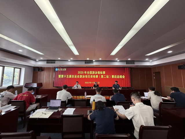 917日上午,游泳学院游泳队在行政办公楼201会议室召开2025年全国游泳锦标赛暨第十五届全运会游泳项目资格赛(第二站)赛后总结会。党委常委、副校长刘健出席会议。游泳学院党总支书记骆晓娟院长王伟新、游泳队全体管理干部、一线教练员、体能教练及科医保障人员参加会议。会议由王伟新主持。
