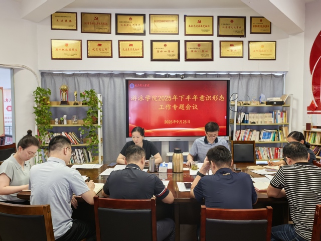 9月25日上午,游泳学院在跳水花游馆二楼会议室召开2025年下半年意识形态工作专题会议。学院党总支书记骆晓娟主持会议。学院全体管理干部参加会议。