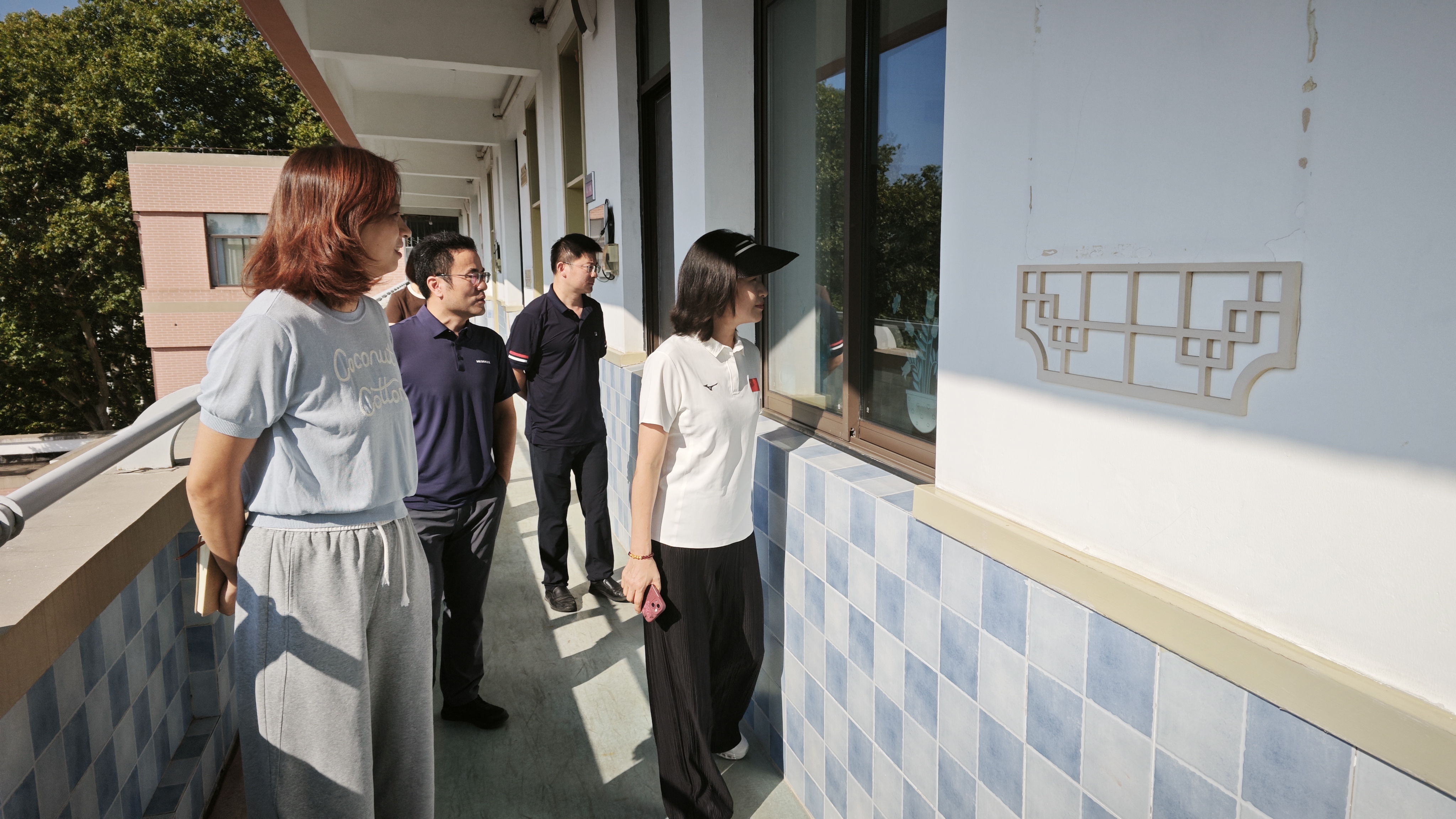 1010日上午,击剑学院直属党支部书记朱小兰携管理干部赴附属学校督查运动员的到校出勤和课堂学习情况。