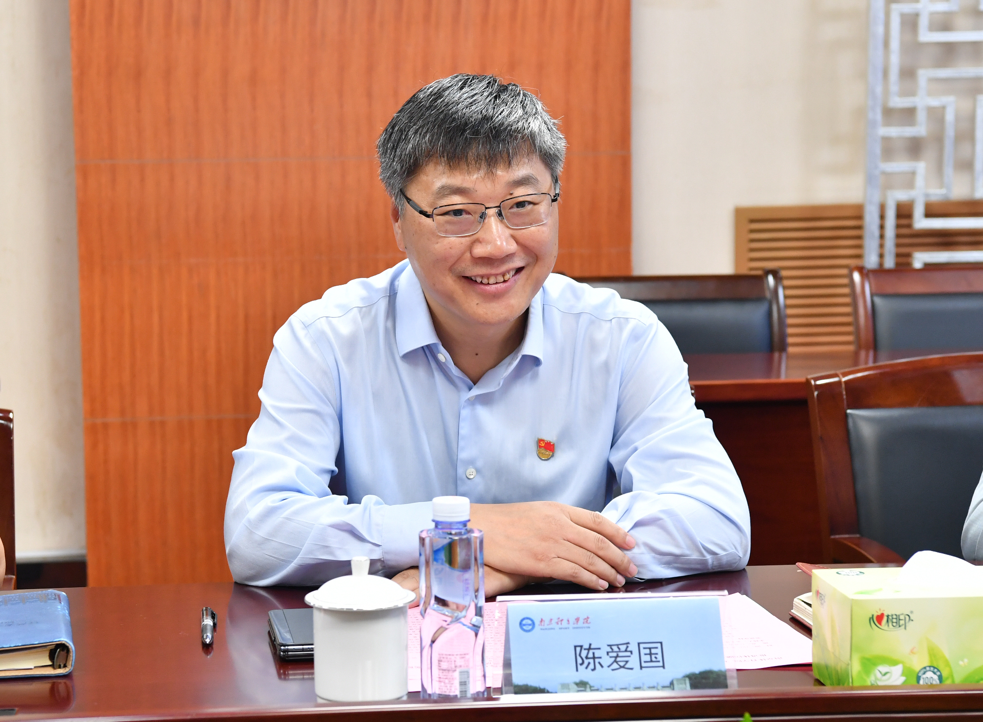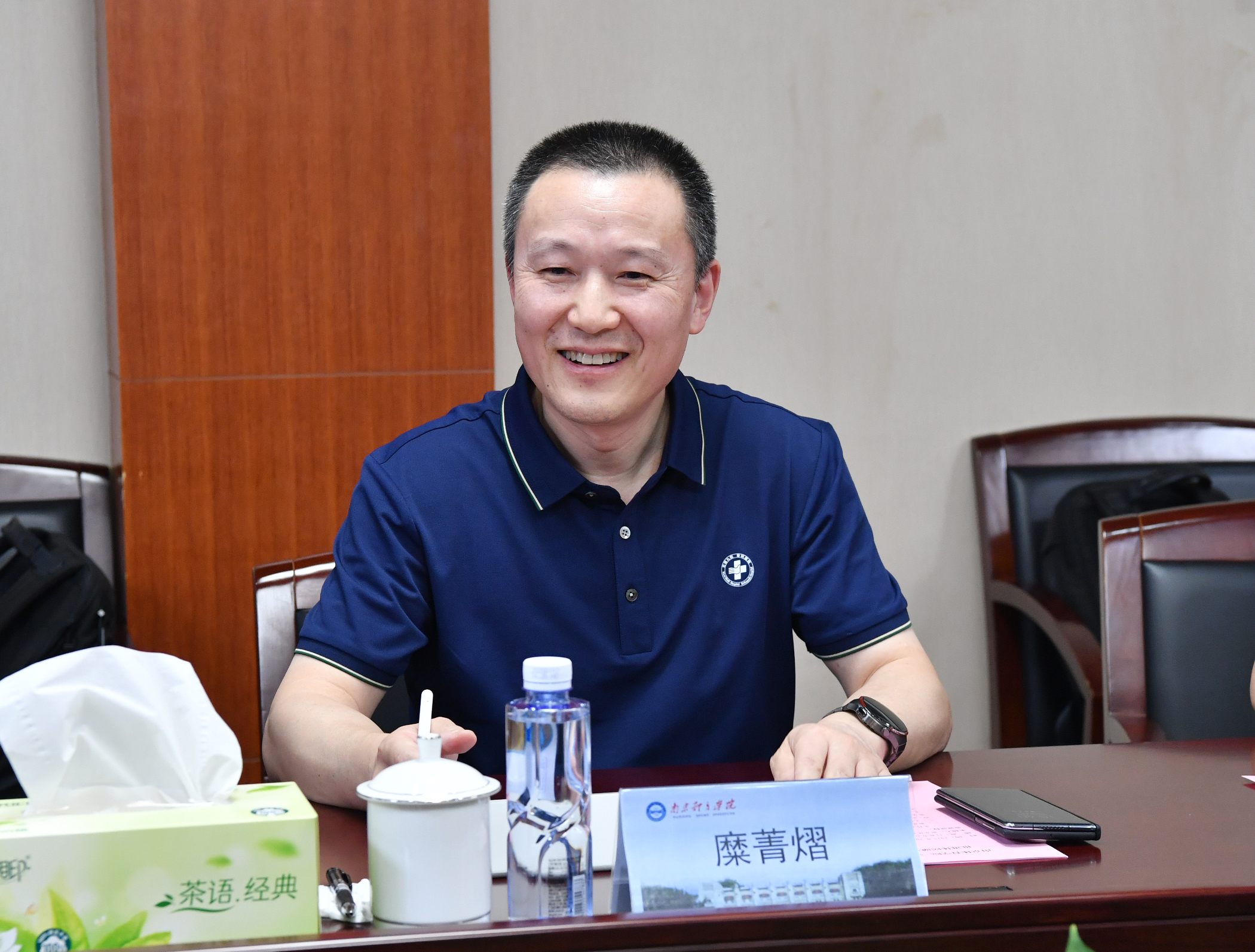 10月15日,无锡市第九人民医院院长糜菁熠一行来我校访问交流,校党委书记刘红明亲切会见来访交流团。校党委常委、副校长陈爱国与糜菁熠院长及双方相关部门负责人出席体医融合合作座谈会。会议由科研处处长赵彦主持。
