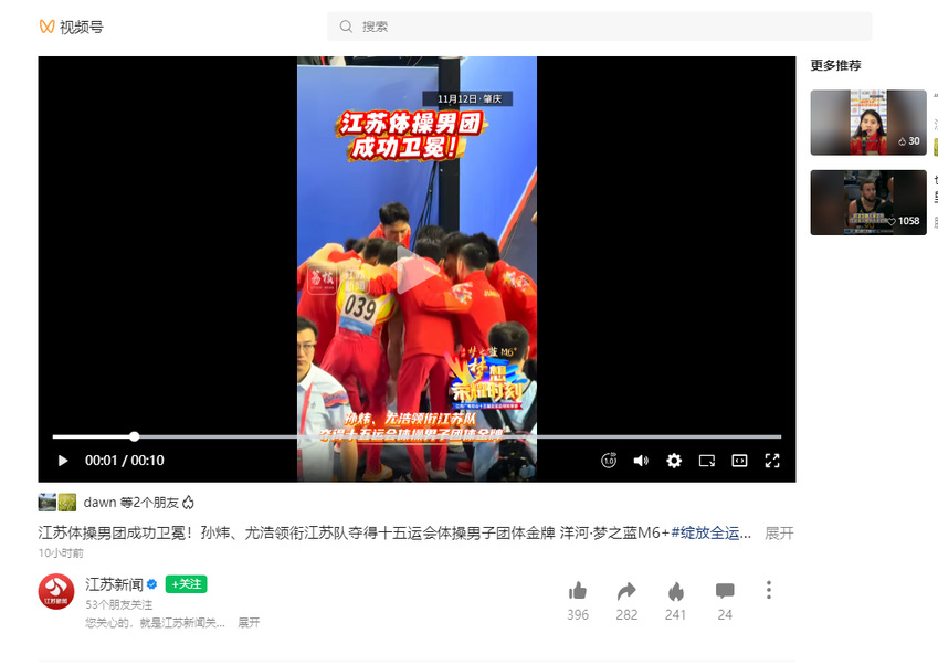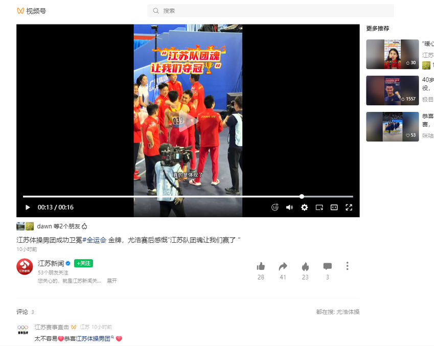 【江苏新闻】江苏体操男团成功卫冕#全运会 金牌,尤浩赛后感慨“江苏队团魂让我们赢了 ”