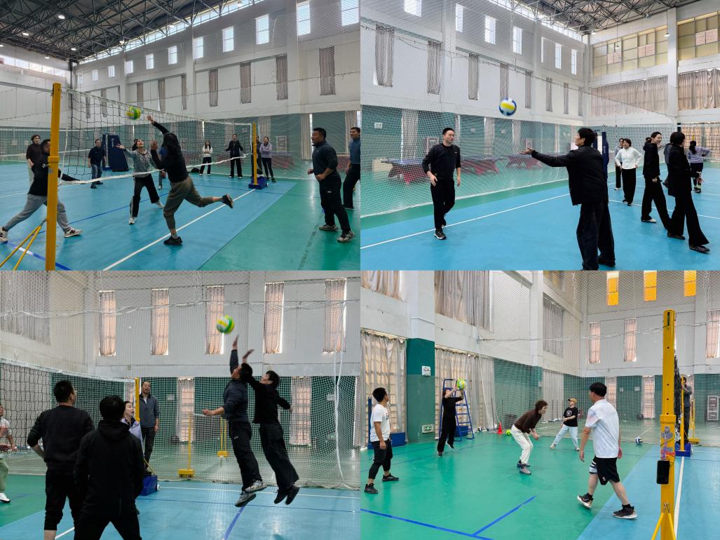 活动伊始,老师们共同开展热身运动,充分活动关节、舒展筋骨,为后续比赛做好准备。正式比赛环节严格遵循气排球规则,各队伍迅速进入状态,老师们全身心投入,发球精准有力、垫球稳定扎实、传球默契连贯、扣球果断迅猛,每一次精彩攻防都引来现场阵阵欢呼。赛场上,大家全力以赴、奋勇拼搏,用汗水诠释体育精神;赛场下,队友间相互鼓劲、观众们热情呐喊,热闹的氛围中满是团结与协作的力量,生动展现了气排球“轻量、协作、趣味”的独特魅力。