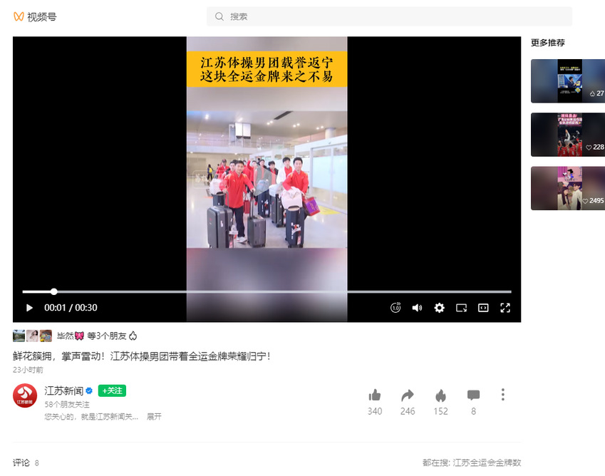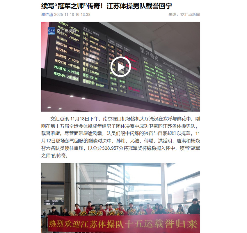 【江苏新闻】鲜花簇拥,掌声雷动!江苏体操男团带着全运金牌荣耀归宁!