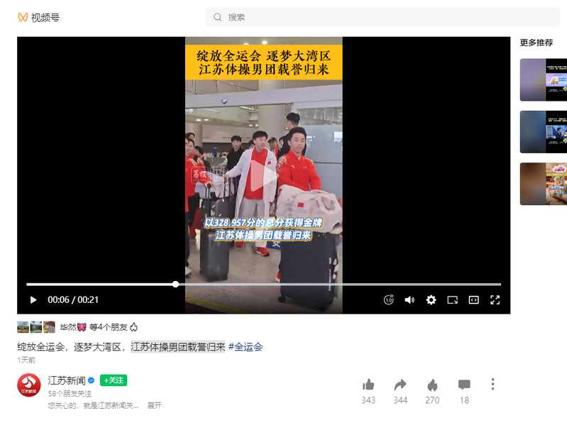 【江苏新闻】绽放全运会,逐梦大湾区,江苏体操男团载誉归来 #全运会