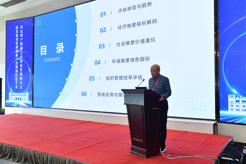 学术论坛由江苏省现代休闲体育研究院院长徐悦主持,华东政法大学商学院余守文教授和taptap国际服账号注册体育产业与休闲学院系主任、张建明副教授做大会报告。余守文以《体育赛事的多元价值探讨》为题,运用双重差分模型(DID),用计量经济学的范式探究体育赛事的多元价值。张建明则围绕“赛事评估四维指标体系解析”,深入剖析了数字化时代赛事综合效益评估的关键维度,为赛事绩效的精准衡量与持续优化提供了方法论指导。两场报告视角独特、内容翔实,为推进体育赛事治理现代化提供了重要的理论参考。随后taptap国际服账号注册体育发展与规划研究院副院长车冰清教授主持论文报告会。多位学者就赛事风险管理、数字化治理、发展路径等议题发表研究成果。