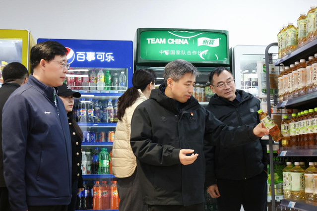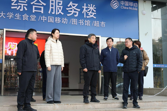 刘红明一行对学生大学生食堂、超市等生活社区进行了实地查看,并与同学进行交流互动。