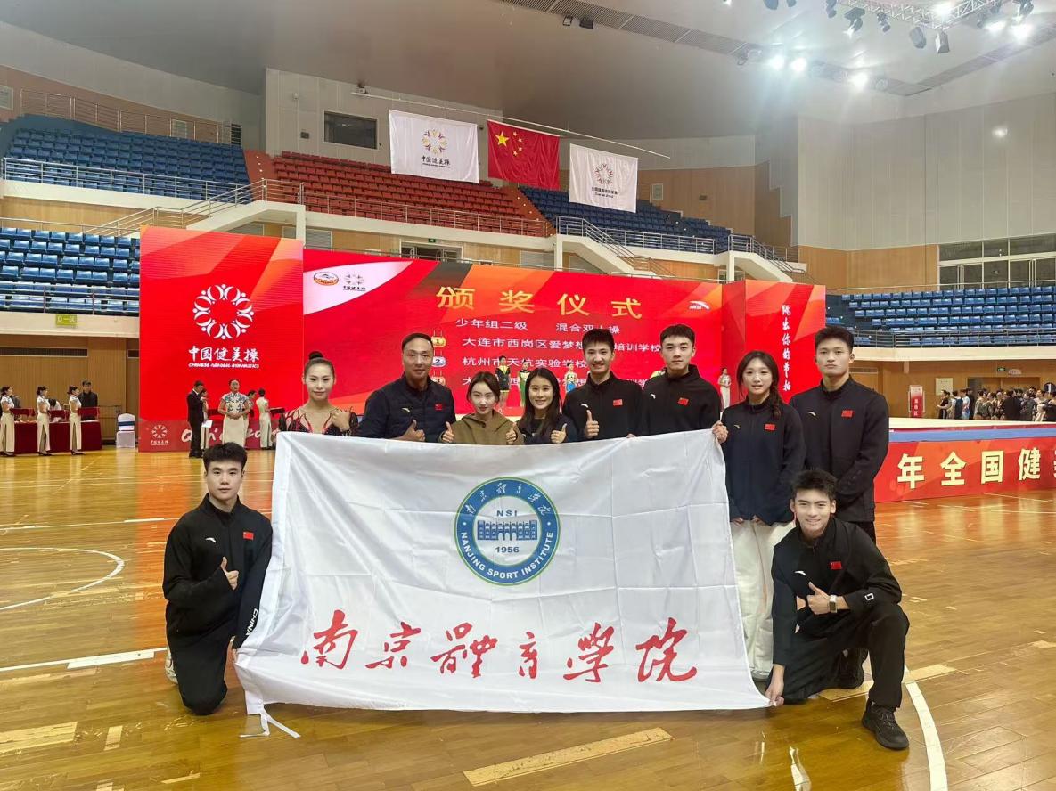 武术与艺术学院体操系教师王连睿、席瑞阳带队出征,7名运动员组成参赛阵容,全力冲击女子单人操、三人操、五人操及混合双人操等多个项目。然而赛事伊始便迎来考验——4名队员抵达赛场后,因病毒感染相继出现发烧、肌肉酸痛等症状,高强度的赛前训练本就让身体处于紧绷状态,突如其来的不适更让动作练习变得格外艰难。但即便如此,队员们始终没有动摇参赛决心。发烧到38.5℃仍咬牙完成力量训练,肌肉酸痛难忍就互相按摩放松,教练团队则实时调整训练计划、准备药品与温热补给,整个队伍拧成一股绳,誓要在赛场上展现bjycgold风采。