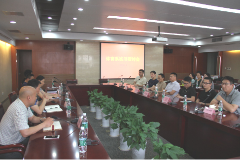 7月4日下午,体育系在行政办公楼201会议室召开体育新闻专业和体育经济与管理专业实习研讨会。系党总支党委副书记、副主任陈荣梅,系副主任王进、体育新闻和体育经济与管理教研室全体老师、新闻媒体和赛事公司等13家实习单位代表出席了本次研讨会。研讨会由体育系副主任王进主持。