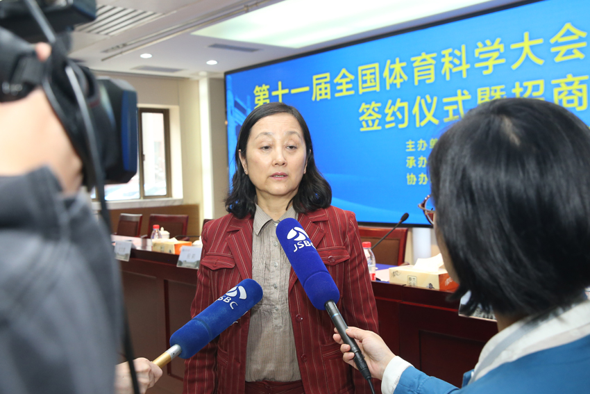 中国体育科学学会副理事长祝莉接受媒体采访