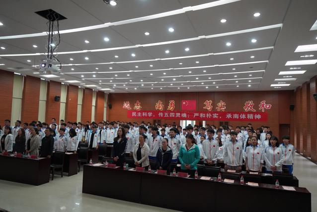 全体起立唱国歌、团歌