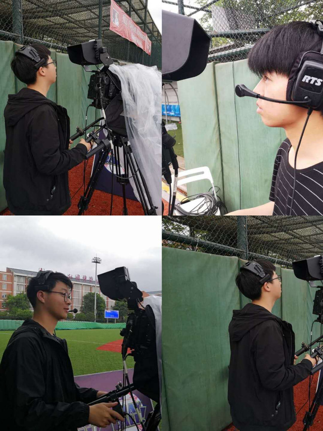 参与转播的同学在练习摄像技术