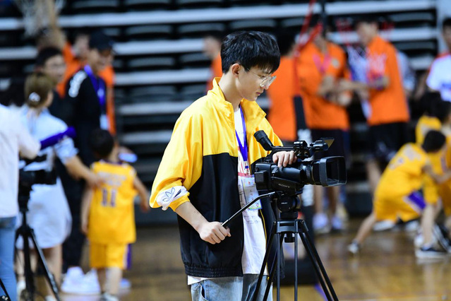 参与媒体赛事服务的学生在摄像