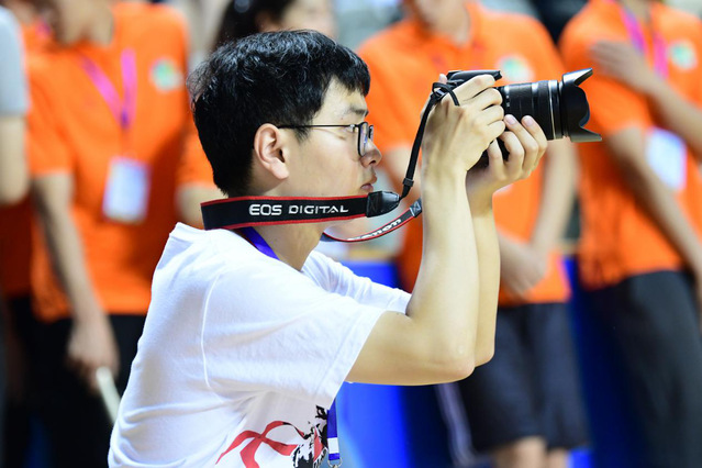 参与媒体赛事服务的学生在摄影