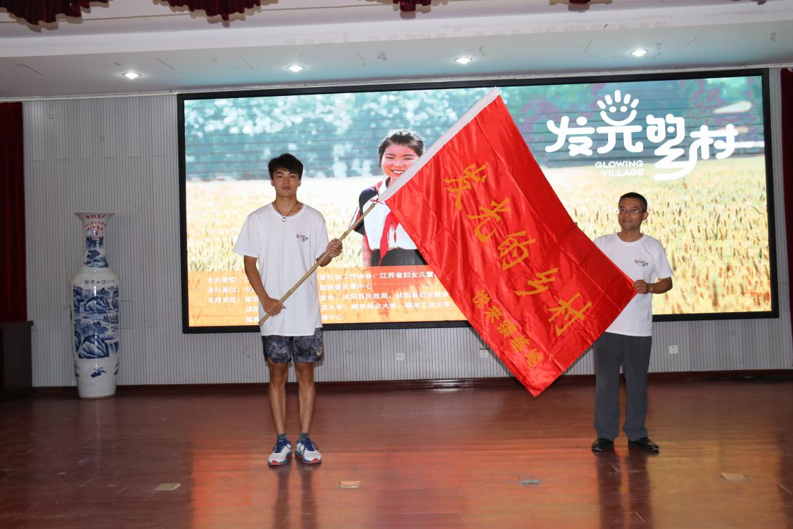 枣林、大方村的夏令营启动仪式,由驻枣林村第一书记刘双喜主持。仪式伊始,沭阳县悦来镇九年制学校校长姜惠明发表致辞,姜校指出:悦来九年制学校以书法和足球为特色,希望在接下来的夏令营活动中,孩子们能与志愿者们共同成长进步。紧接着,驻大方村第一书记黄健为我院志愿者代表王兆麒授旗;指导老师宋树梅与两位村书记及陈少春副校长四人进行揭牌仪式;体育教育与人文学院的尹航同学作为志愿者代表发言,表达了志愿者的责任与担当;悦来镇副镇长徐红枫宣布开营仪式正式启动。
