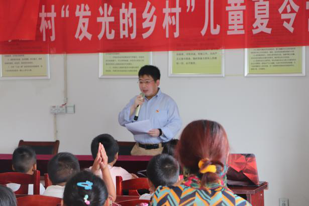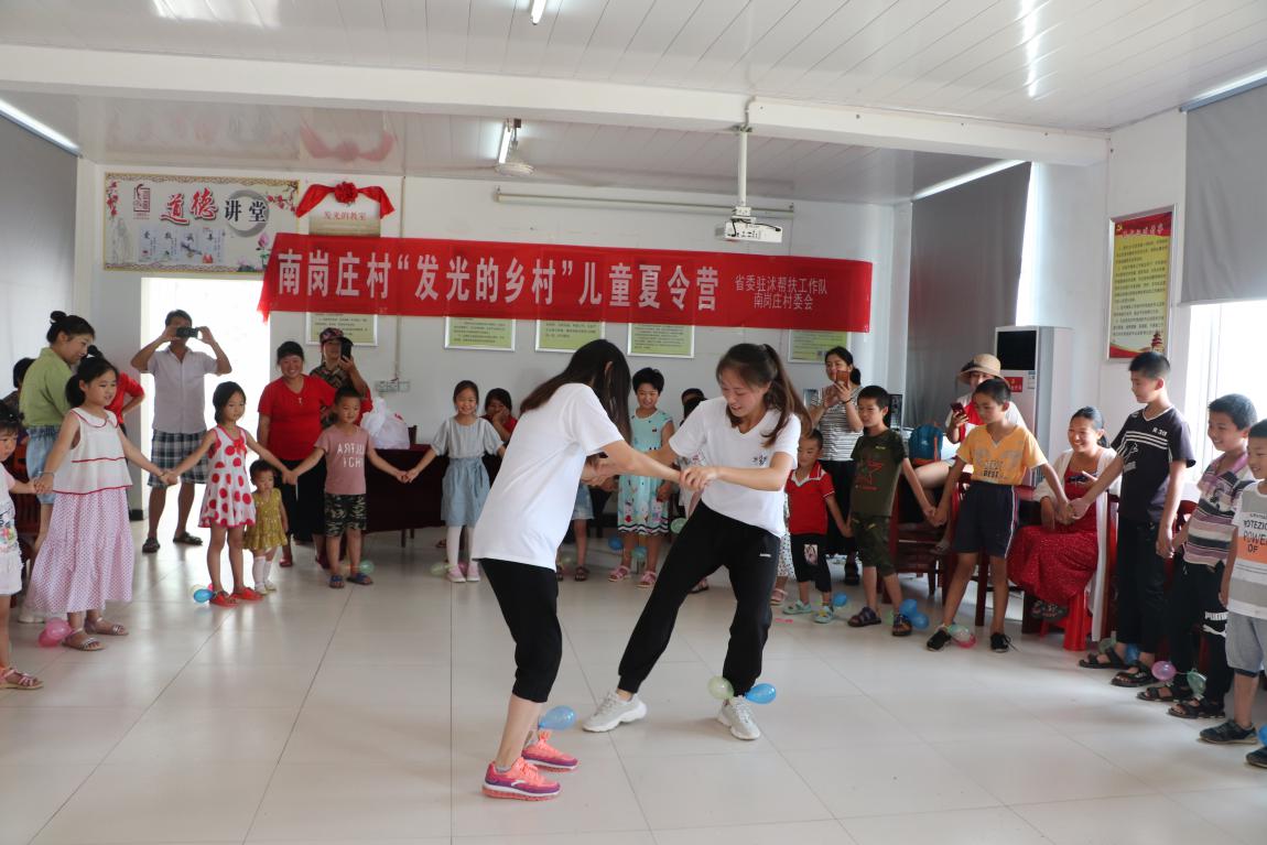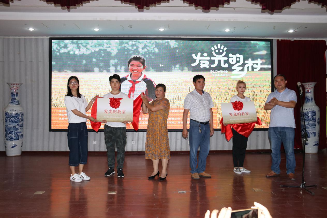 南岗庄村重点突出“发光的乡村”的揭牌仪式。由刘集镇南岗庄村村委会书记韩运松与体育教育与人文学院的石苏苏共同揭牌,拉开了志愿支教活动的序幕。驻村第一书记林海强调,志愿者们要着重培养孩子们体育、艺术方面的兴趣,激发小朋友对美好未来的向往,让儿童得到全面发展,让我们的家乡亮起来。最后,他希望小朋友们和志愿者们在接下来几天里愉快相处,全面发展。