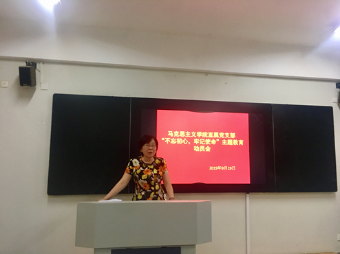 她强调马克思主义学院全体人员要把开展“不忘初心、牢记使命”主题教育作为一项重大政治任务,落实领导责任,强化督促指导,强化宣传引导,防止形式主义,注重统筹结合,确保主题教育取得实实在在的成效。