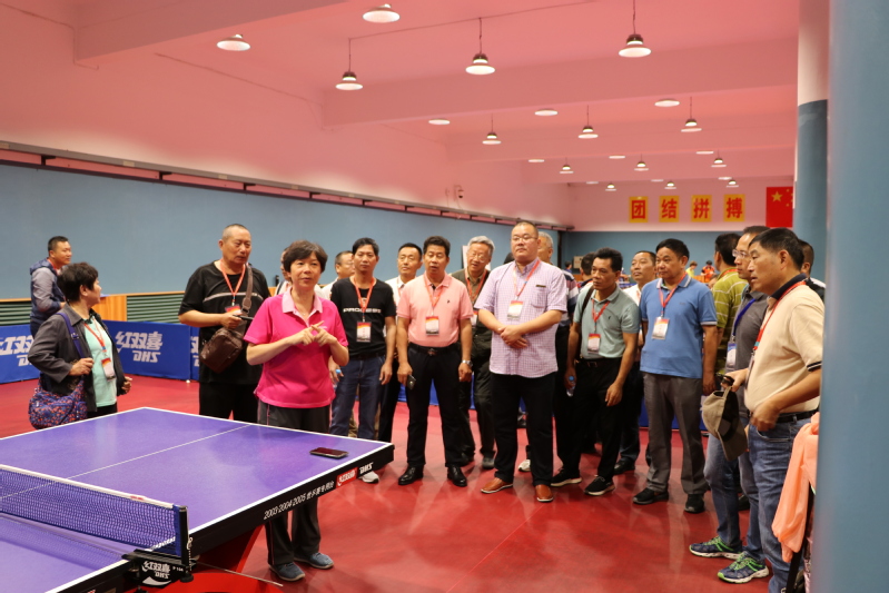 乒乓球队靳鲁芳教练为全国劳模代表团讲解