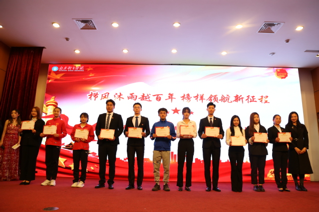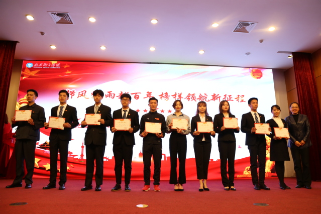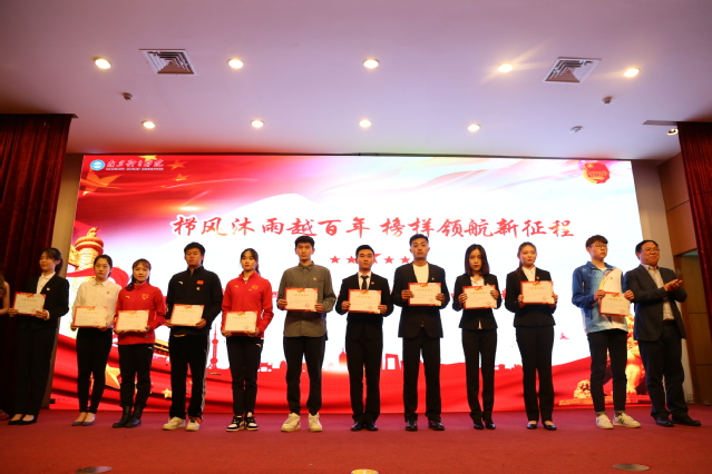 栉风沐雨越百年,榜样领航新征程。表彰大会在全体师生合唱《我和我的祖国》中结束。