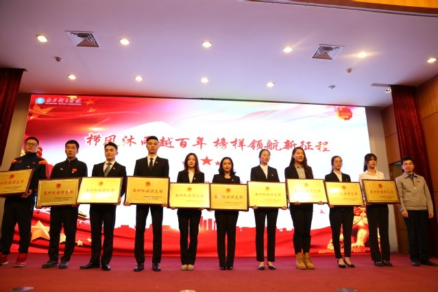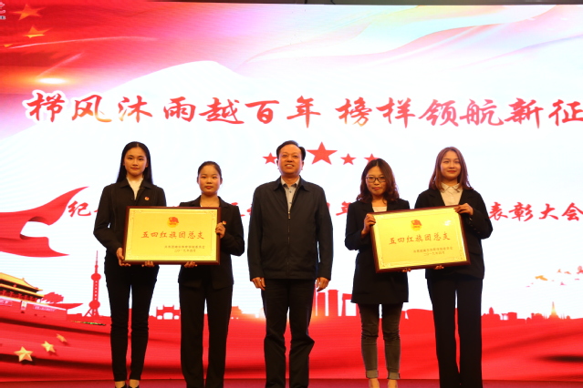 校党委副书记兰亚明为获得“五四红旗团支部”的支部颁奖