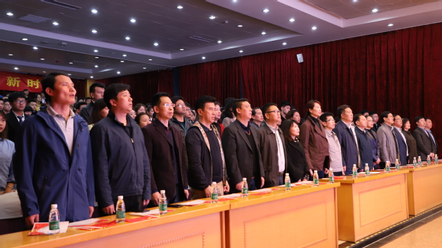 表彰大会在雄壮的国歌和团歌声中拉开帷幕。