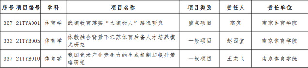至此,我校今年省部级项目共获批立项11项,其中获批教育部人文社科青年基金项目2项、自筹经费项目1项、专项任务高校辅导员研究项目1项,国家体育总局决策咨询重大项目1项、体育科普项目1项,省社科基金重点项目1项、一般项目2项、自筹项目2项。今年我校省部级立项项目种类和领域较往年都有了新的突破,教育部人文社科自筹经费项目和专项任务项目首次获批,立项项目涉及学科领域除了体育学学科,还有交叉学科。