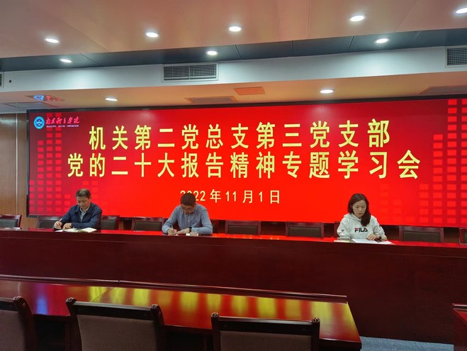111日下午,机关第二党总支第三党支部在行政办公楼201会议室召开党的二十大报告精神专题学习会,计划财务处全体人员参加会议。支部书记王利雅主持会议并领学相关内容。