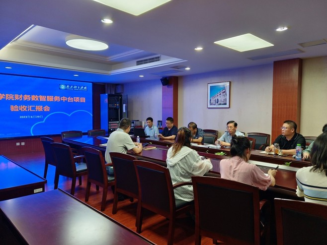 6月29日下午,我校在301会议室召开财务数智服务中台项目验收会,校党委常委、总会计师黄步龙出席会议并讲话,计划财务处处长丁锴主持验收会,校信息化建设处处长叶强、资产管理处专家出席会议,计划财务处相关人员和金蝶项目组人员等参加会议。