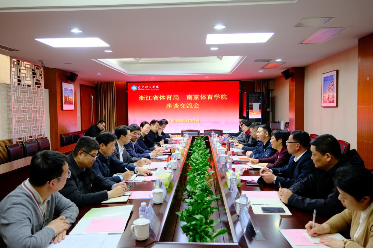 3月22日上午,浙江省体育局党组成员、副局长廖洪钰,浙江体育职业技术学院党委书记郭海英一行来校交流调研。党委副书记、校长杨国庆,党委常委、副校长肖爱华出席调研活动。