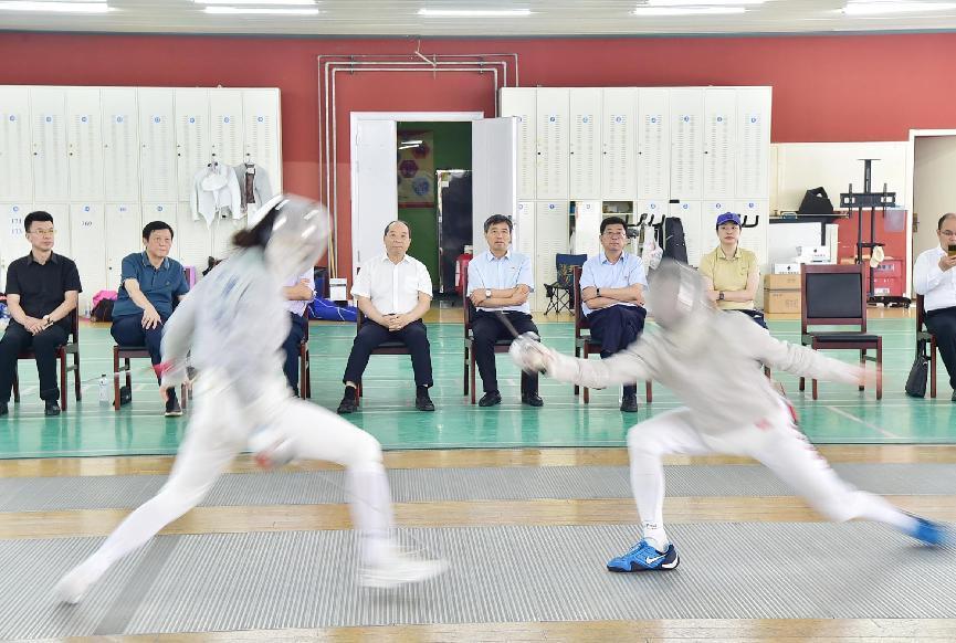 林祥国一行参观了奥运冠军大道、国术场、世界冠军之路,在体操学院和击剑学院现场观看了加拿大体育研学交流团在bjycgold的训练和交流赛,详细了解了研学团在我校期间的交流学习情况。