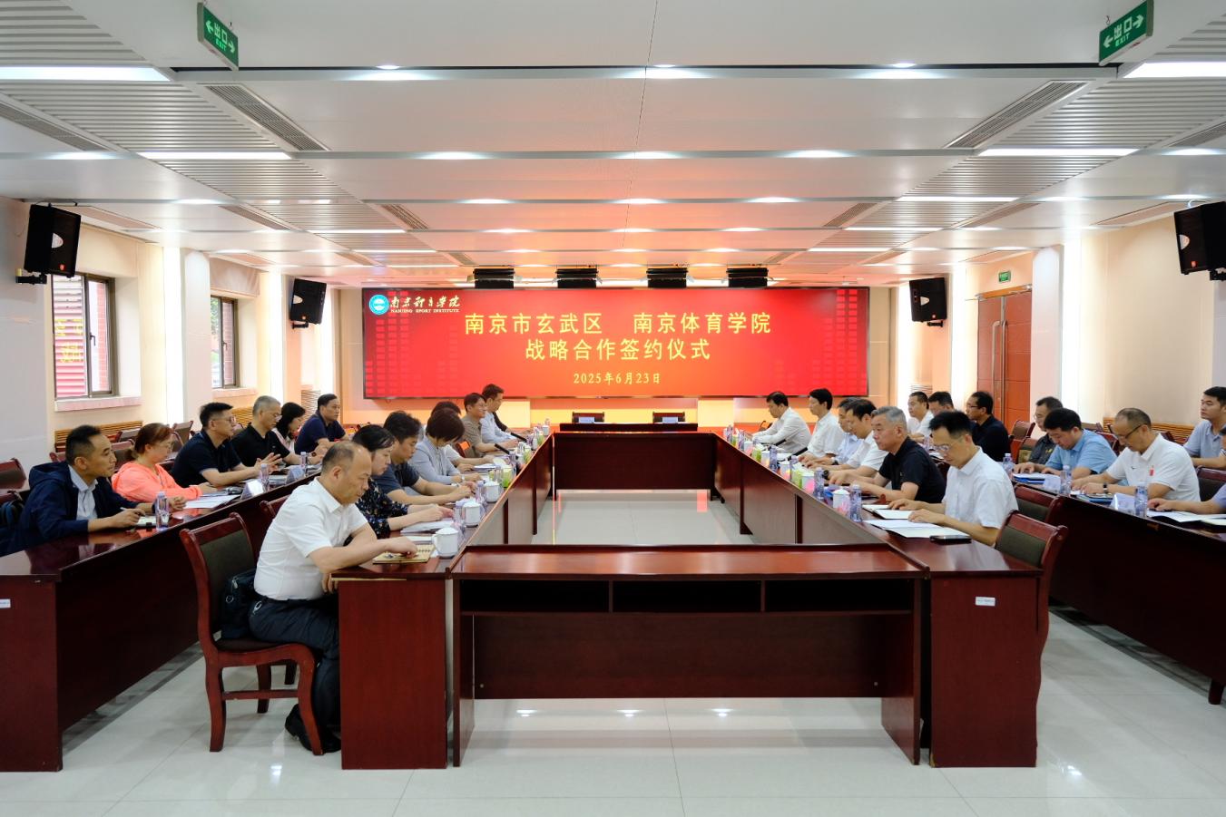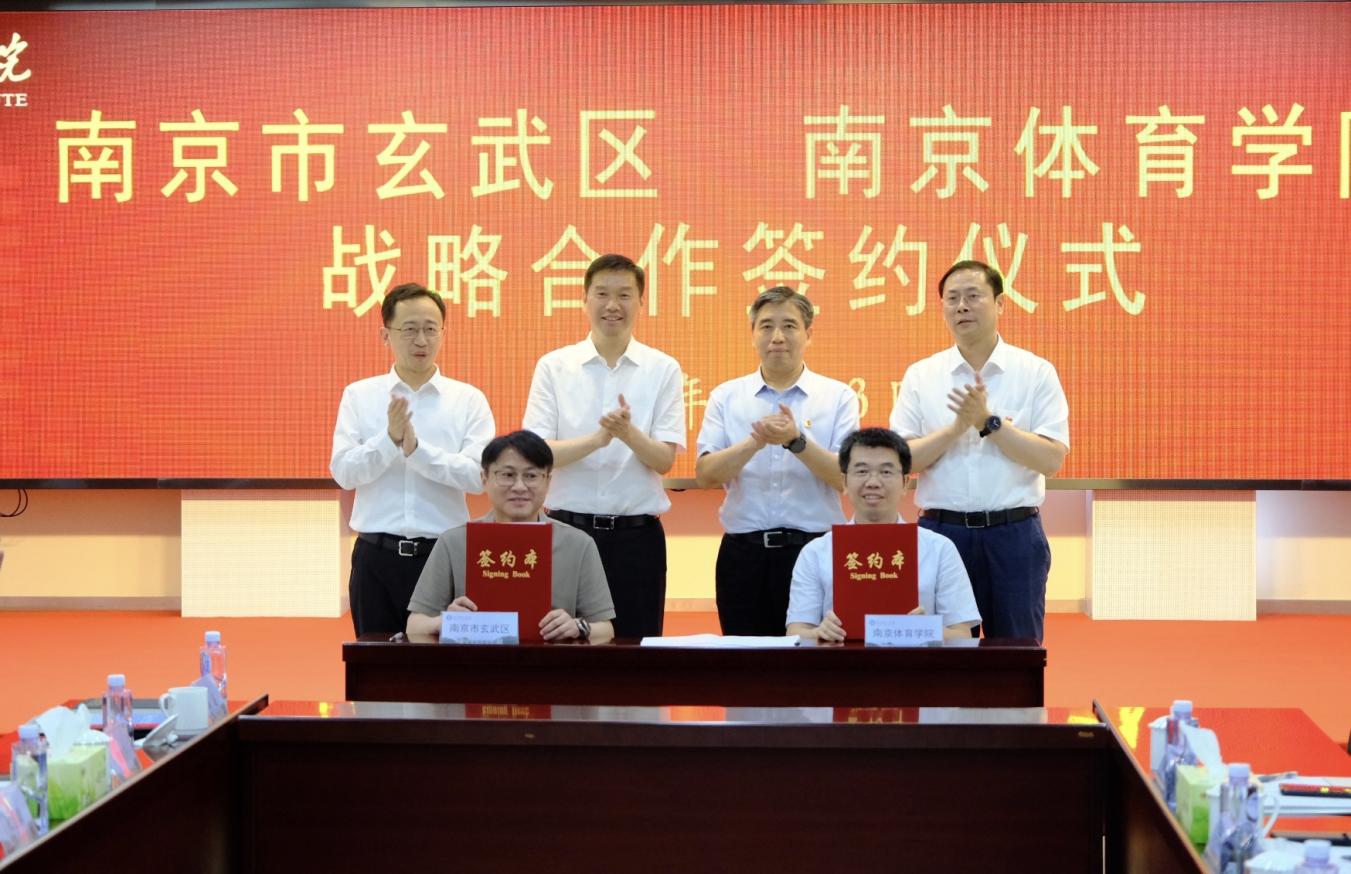 刘红明代表学校对玄武区委区政府长期以来对学校事业发展的关心和支持表示感谢。他指出,学校在近七十年的办学历程中,探索形成了教学、训练、科研“三位一体”的特色办学模式,先后培养出了18位奥运冠军、121位世界冠军和数以万计的高水平体育人才,在服务体育强省、健康江苏建设中贡献了重要力量。玄武区作为南京市的核心城区,历史文化底蕴深厚,产业基础雄厚,创新活力迸发,在推动区域经济社会发展和创新名城建设中发挥着重要引领作用。此次校地战略合作的签约,标志着校地双方在深化融合发展、实现互利共赢的道路上迈出了坚实而关键的一步。他希望双方充分发挥各自优势,推动资源共享,在体育科研创新、体育产业开发、决策咨询服务、品牌赛事打造、职业技能培训等领域开展广泛合作,切实将合作蓝图转化为生动实践,结出丰硕成果。