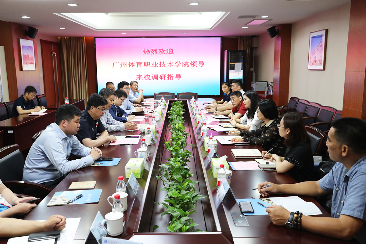 5月14日上午,广州体育职业技术学院党委书记谭爱英一行7人来校考察调研。校领导朱传耿、杨国庆、兰亚明和党政办、发展规划处、学科办、训练处、教务处、学工处、人事处、运动训练学院(足球学院)等部门负责人参加了调研活动。