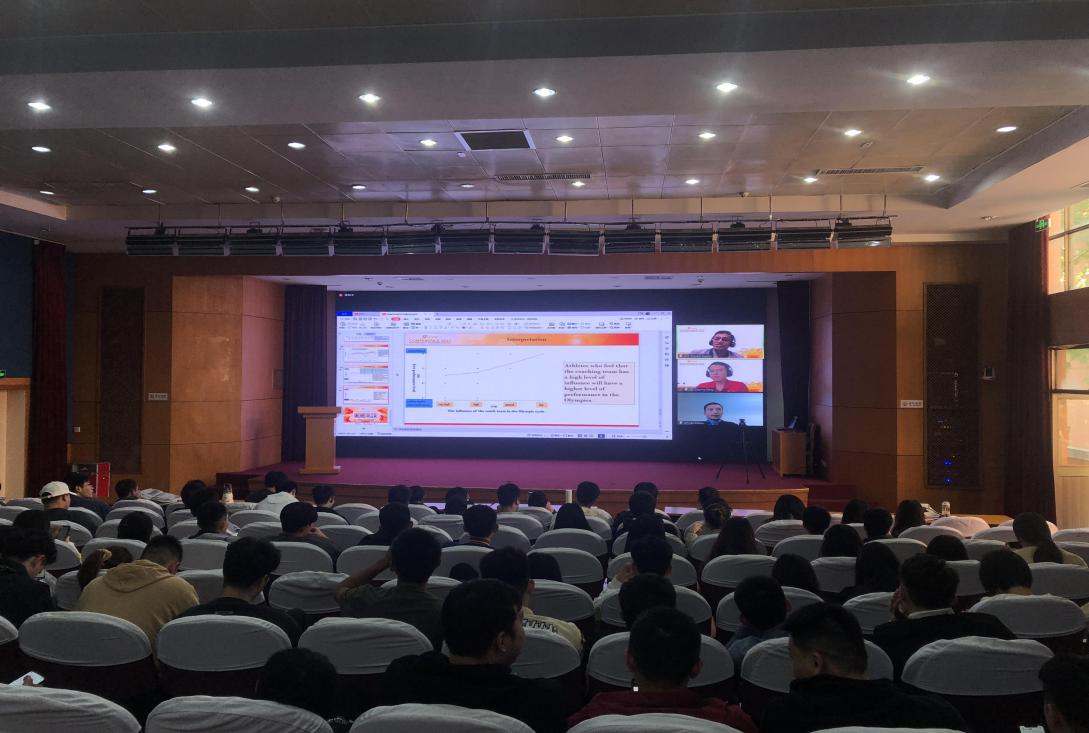我校运动训练学院胡海旭博士受邀参加了此次论坛,并于10月27日上午作了题为“中国奥运冠军临场表现影响因素实证分析”的大会发言。胡博士运用多种实证分析方法,通过一系列清晰直观的图表数据,向听众详细论述了影响奥运冠军临场表现的几大因素。
