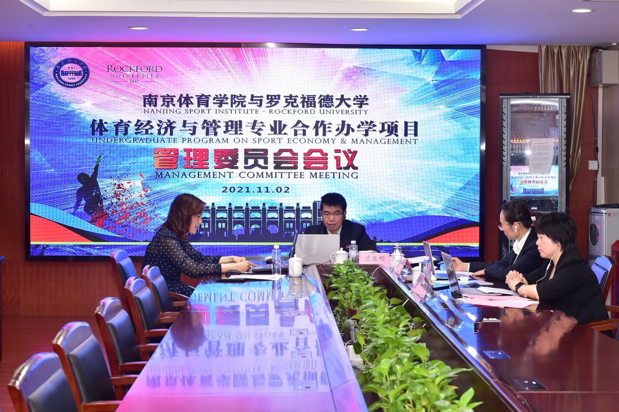 11月2日上午,我校与美国罗克福德大学体育经济与管理专业合作办学项目管理委员会会议在行政楼301会议室以线上形式顺利召开。校党委副书记、管理委员会主任兰亚明出席会议并讲话,两校管理委员会全体委员参加会议,会议由党政办(国际交流办)副主任张珏主持。
