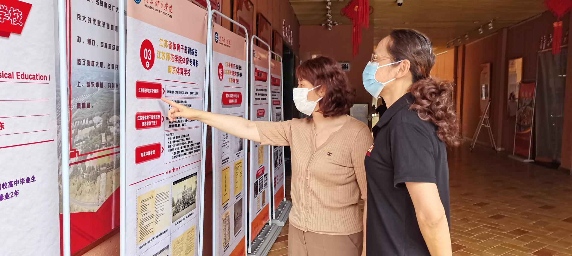 校党委副书记、副校长史国生,校党委副书记兰亚明观看校史溯源主题展板